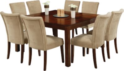 We figure the table is dark enough that it will work with the black chairs that James' parents got us for Christmas. And it meets his requirements of being wood and dark. It's pretty much the same colour as our bar stools that are pictured in the blog post below. This table might not be the best representation. The table has a leaf attached to the it that hides underneat